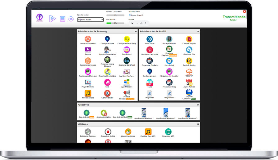 Transmita sus eventos mediante AACPlus y/ó Mp3 y sus clientes le escucharán en dispositivos móviles.